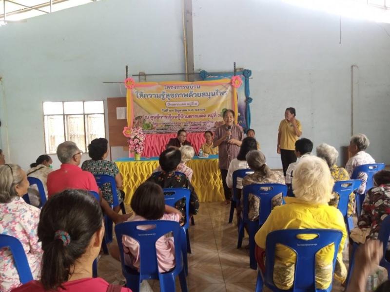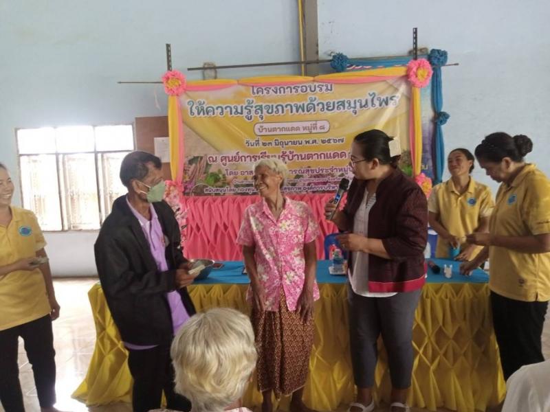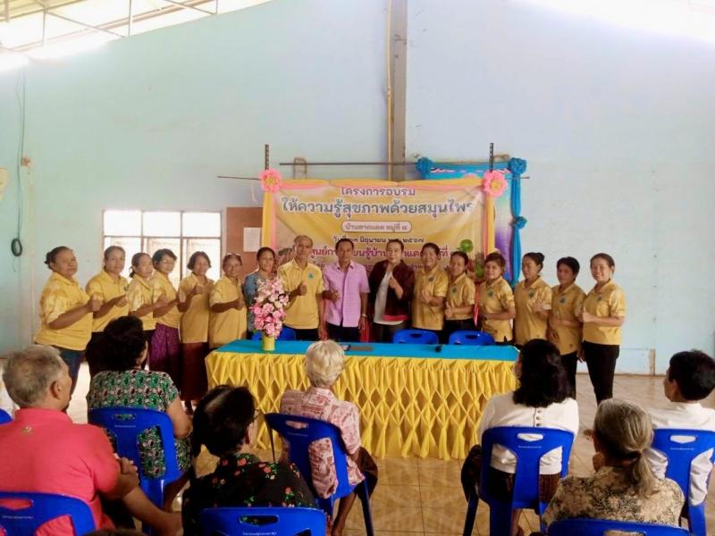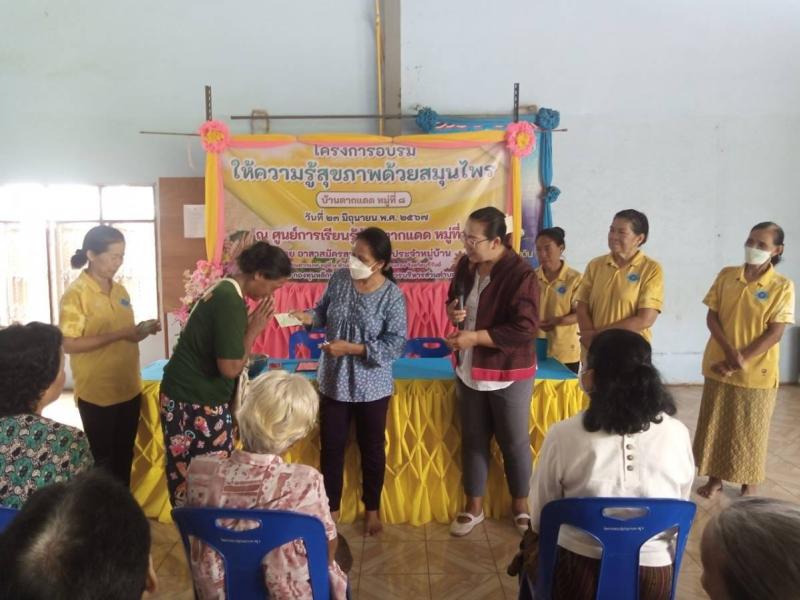 ประธานเปิดโครงการอบรมให้ความรู้สุขภาพด้วยสมุนไพร โดยชมรมอาสาสมัครสาธารณสุขประจำหมู่บ้านตากแดด หมู่ 8 ตำบลนางรอง อำเภอนางรอง จังหวัดบุรีรัมย์ งบประมาณโดยกองทุนหลักประกันสุขภาพองค์การบริหารส่วนตำบลนางรอง
