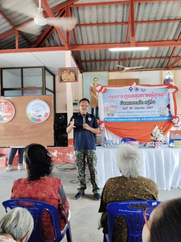 ประธานพิธีเปิดโครงการดูแลผู้สูงอายุ บ้านหนองเสม็ด หมู่ที่ 3 โดยกลุ่มอาสาสมัครสาธารณสุขประจำหมู่บ้านหนองเสม็ด หมู่ที่ 3 ตำบลนางรอง อำเภอนางรอง จังหวัดบุรีรัมย์