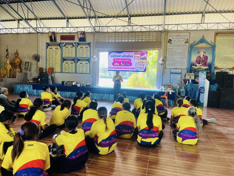 นางผาสุก ประทุมทอง นายกองค์การบริหารส่วนตำบลนางรอง พร้อมคณะผู้บริหาร สมาชิกสภาฯ นายเสกสรรค์ ต่างประโคน รองปลัดองค์การบริหารส่วนตำบล และนายอภิวัฒน์ บัวประชุม นักวิชาการสาธารณสุขปฏิบัติการ ร่วมกิจกรรม คนไทยห่างไกลโรค เดิน วิ่ง ปั่น ตำบลนางรองป้องกันโรคไม่ติดต่อเรื้อรัง NCDs โดยโรงเรียน อสม.สัญจร ณ บ้านบัวตารุ้ง หมู่ที่ 6 ตำบลนางรอง อำเภอนางรอง จังหวัดบุรีรัมย์