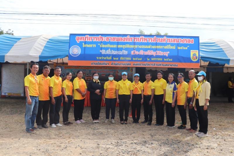 นางผาสุก ประทุมทอง นายกองค์การบริหารส่วนตำบลนางรอง ประธานในพิธีเปิดโครงการป้องกันและลดอุบัติเหตุทางถนนช่วงเทศกาลปีใหม่ 2568 “ขับขี่ปลอดภัย เมืองไทยไร้อุบัติเหตุ” พร้อมคณะผู้บริหาร สมาชิกสภาฯ ปลัดองค์การบริหารส่วนตำบล รองปลัดองค์การบริหารส่วนตำบล หัวหน้าส่วนราชการ ภาคีเครือข่าย และพนักงานส่วนตำบล ณ จุดบริการประชาชนองค์การบริหารส่วนตำบลนางรอง