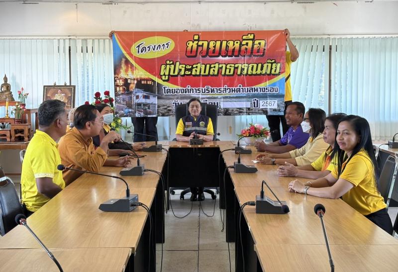 นางผาสุก ประทุมทอง นายกองค์การบริหารส่วนตำบลนางรอง พร้อมคณะผู้บริหาร และหัวหน้าส่วนราชการ มอบเงินช่วยเหลือประชาชนผู้ประสบภัยจากอัคคีภัย เยียวยาหลังได้รับผลกระทบจากไฟไหม้ในพื้นที่ บ้านดอนแสลงพันธ์ หมู่ที่ 4 ตำบลนางรอง อำเภอนางรอง จังหวัดบุรีรัมย์ ณ ห้องประชุมชั้น 2 องค์การบริหารส่วนตำบลนางรอง