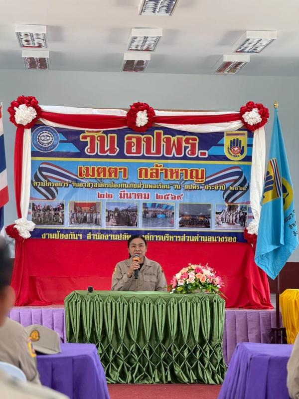 องค์การบริหารส่วนตำบลนางรอง โดยนางผาสุก ประทุมทอง นายกองค์การบริหารส่วนตำบลนางรอง ประธานในพิธีเปิดโครงการวัน อปพร. พร้อมด้วยคณะผู้บริหาร ข้าราชการพนักงานส่วนตำบล ประธานสภา สมาชิกสภาทั้ง 14 หมู่บ้าน และภาคีเครือข่ายผู้นำท้องที่ในเขตพื้นที่ตำบลนางรอง เข้าร่วมโครงการดังกล่าวข้างต้นโดยพร้อมเพรียงกัน ณ ห้องประชุมองค์การบริหารส่วนตำบลนางรอง